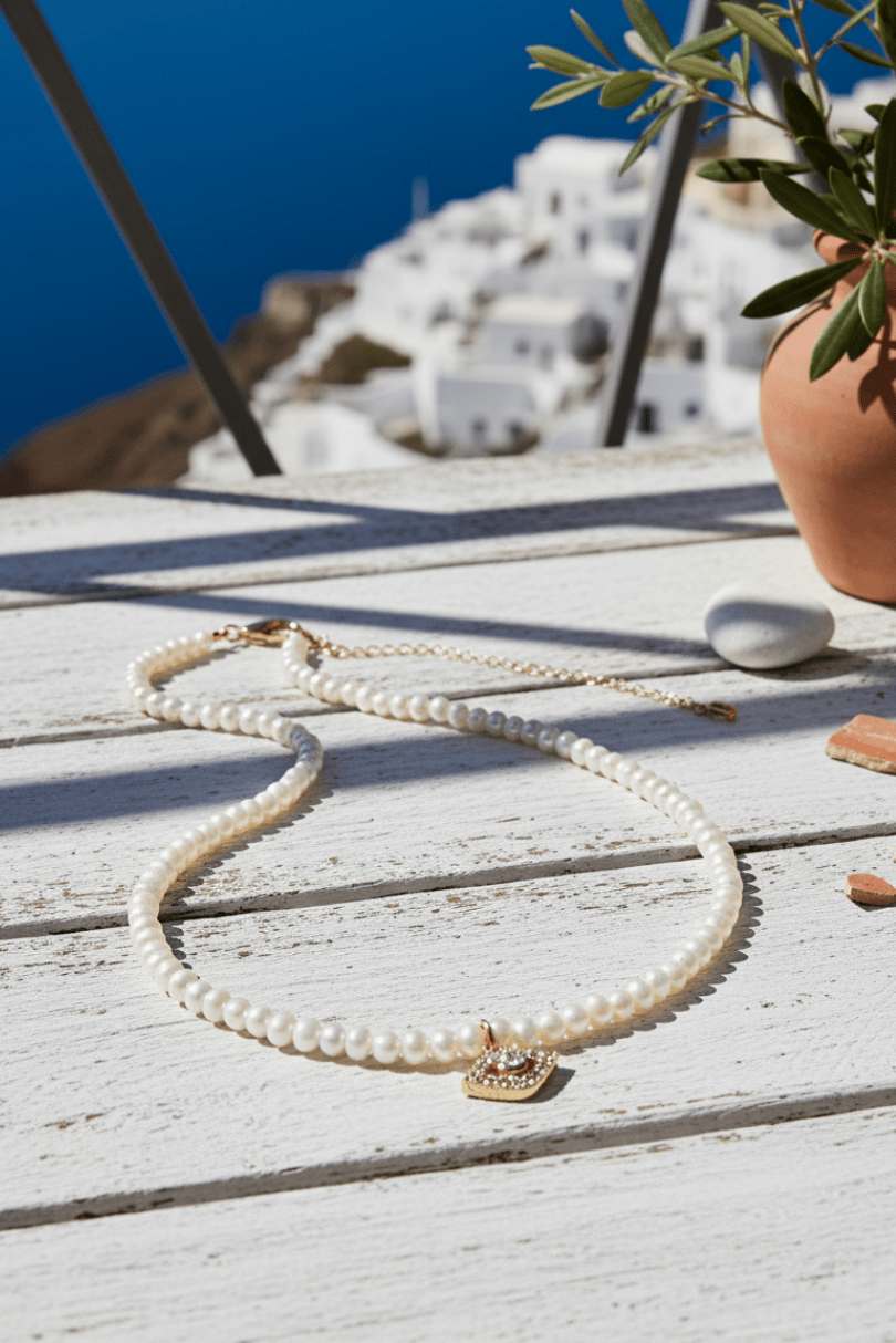 Add Evil Eye Pearl Necklace to the cart