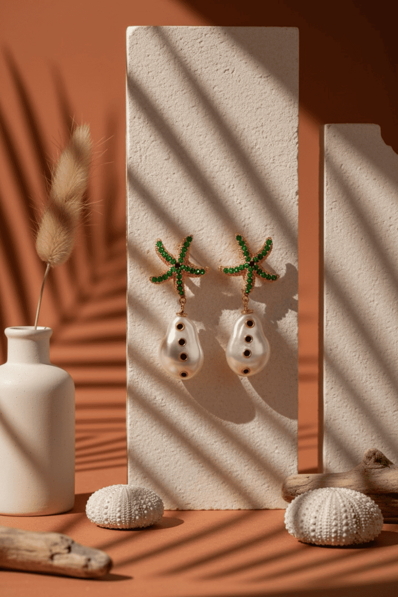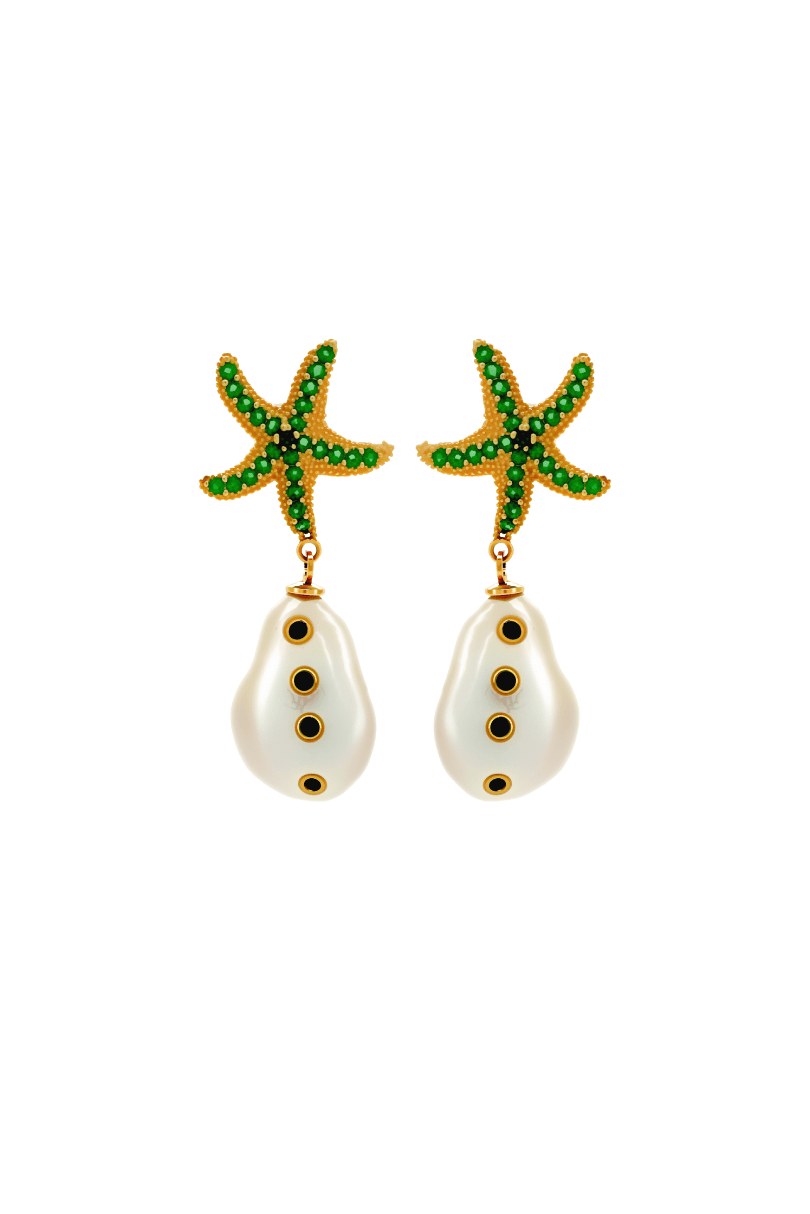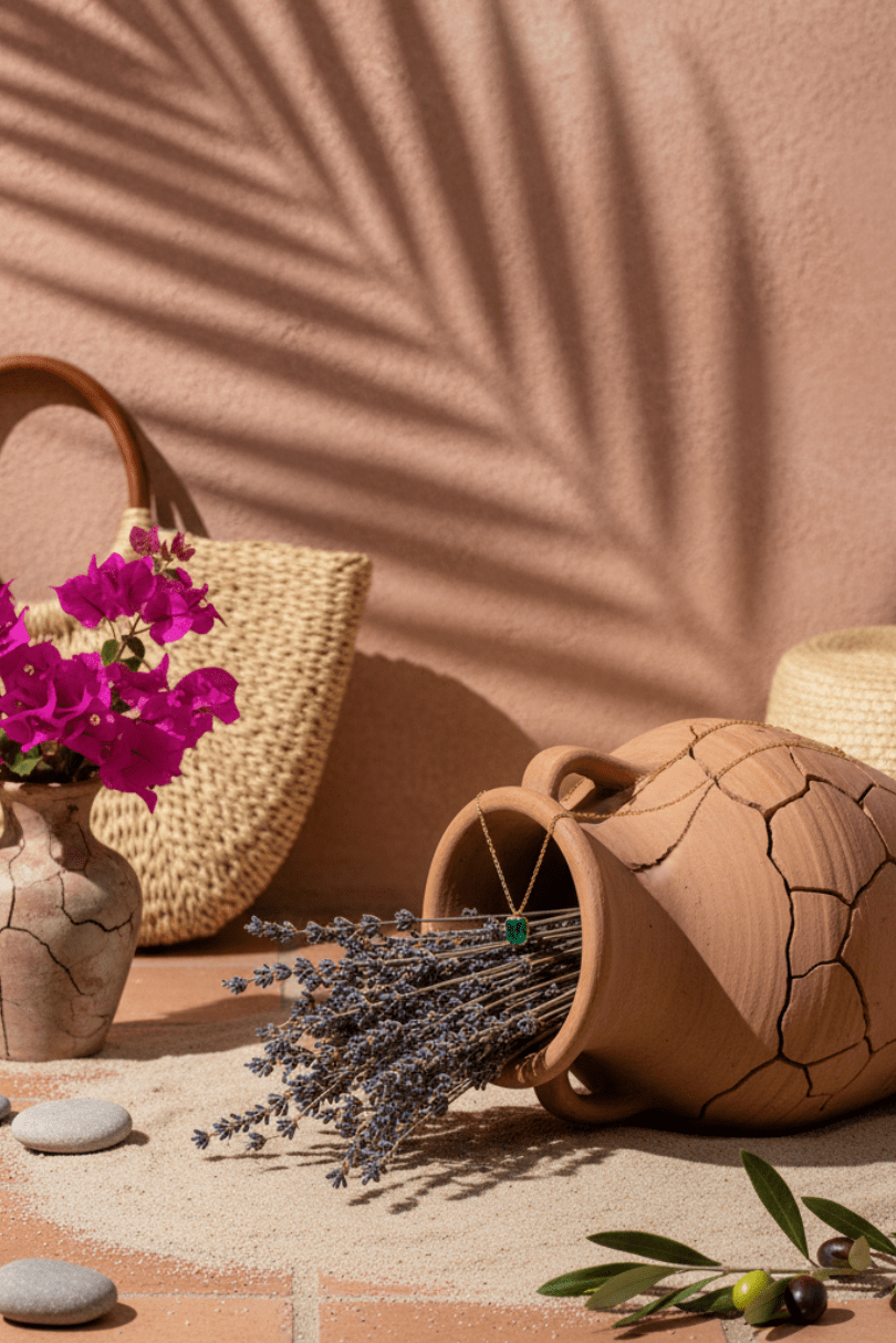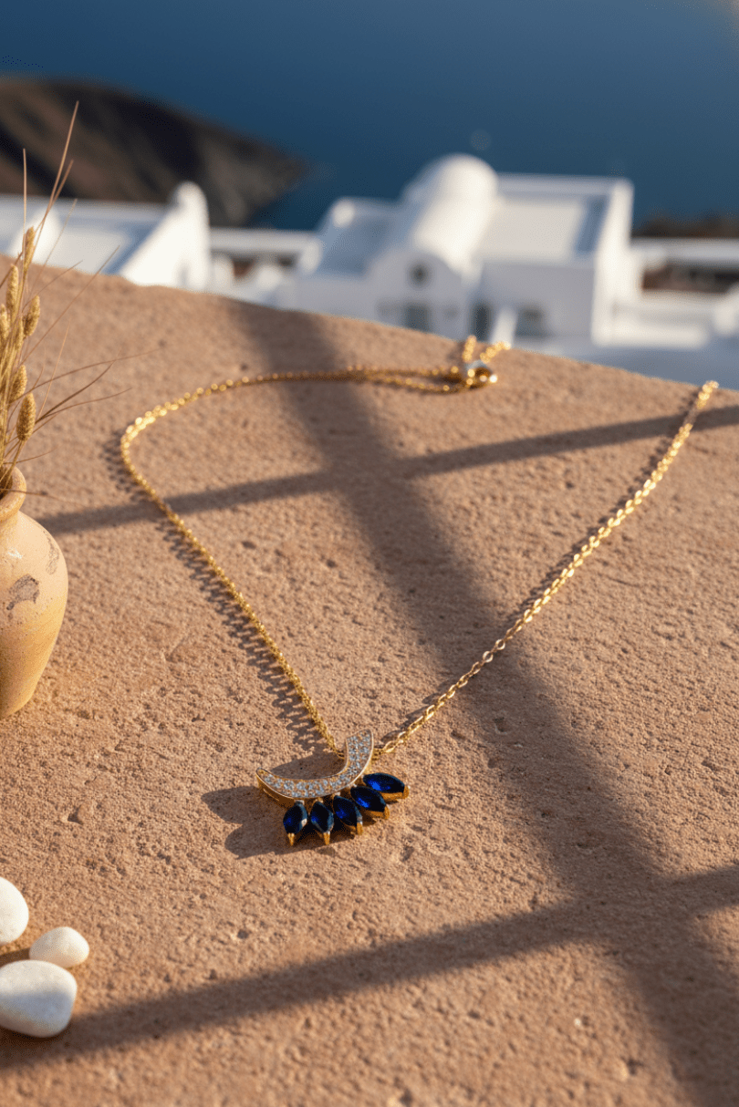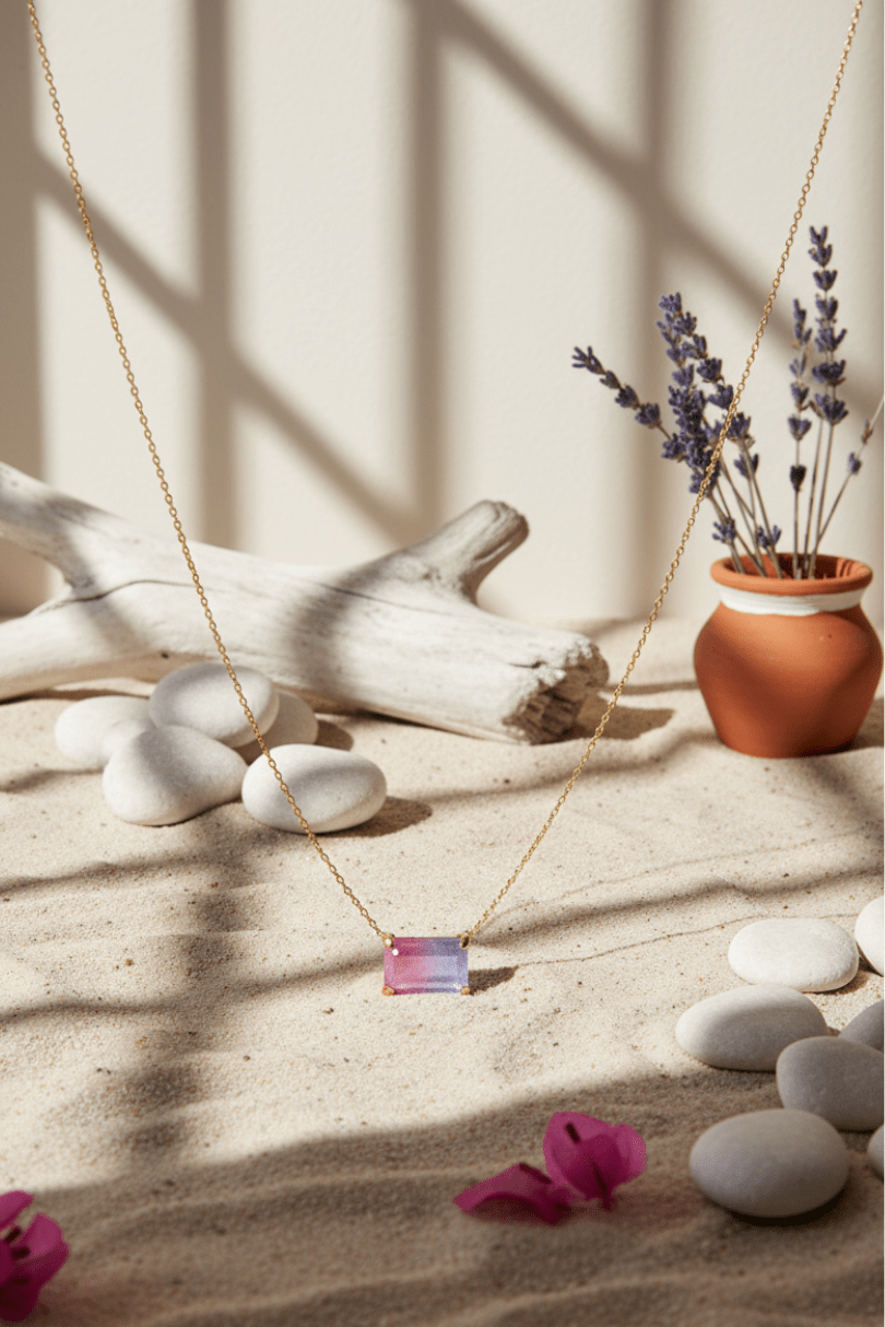 A gold-plated sterling silver necklace with a green emerald pendant.