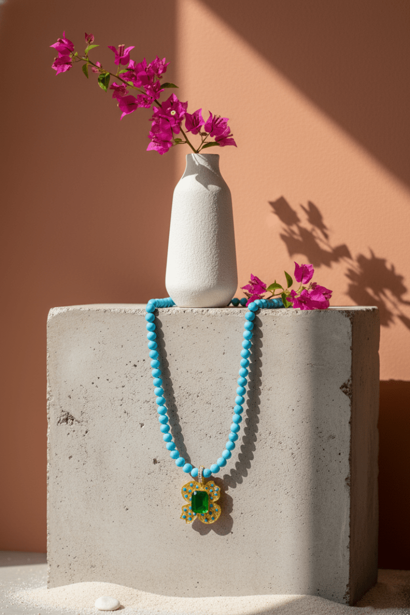 Add Round Turquoise Bead Blooming Flower Necklace to the cart