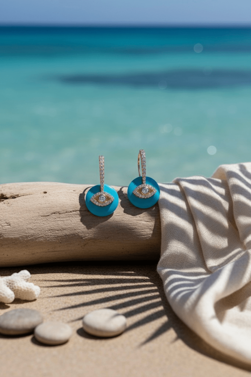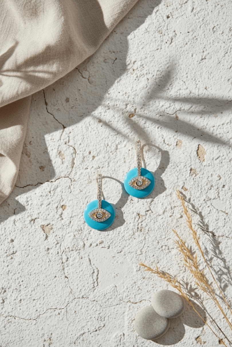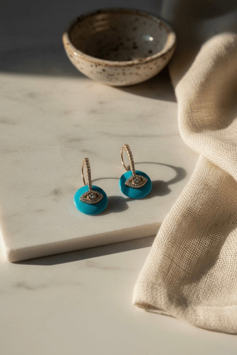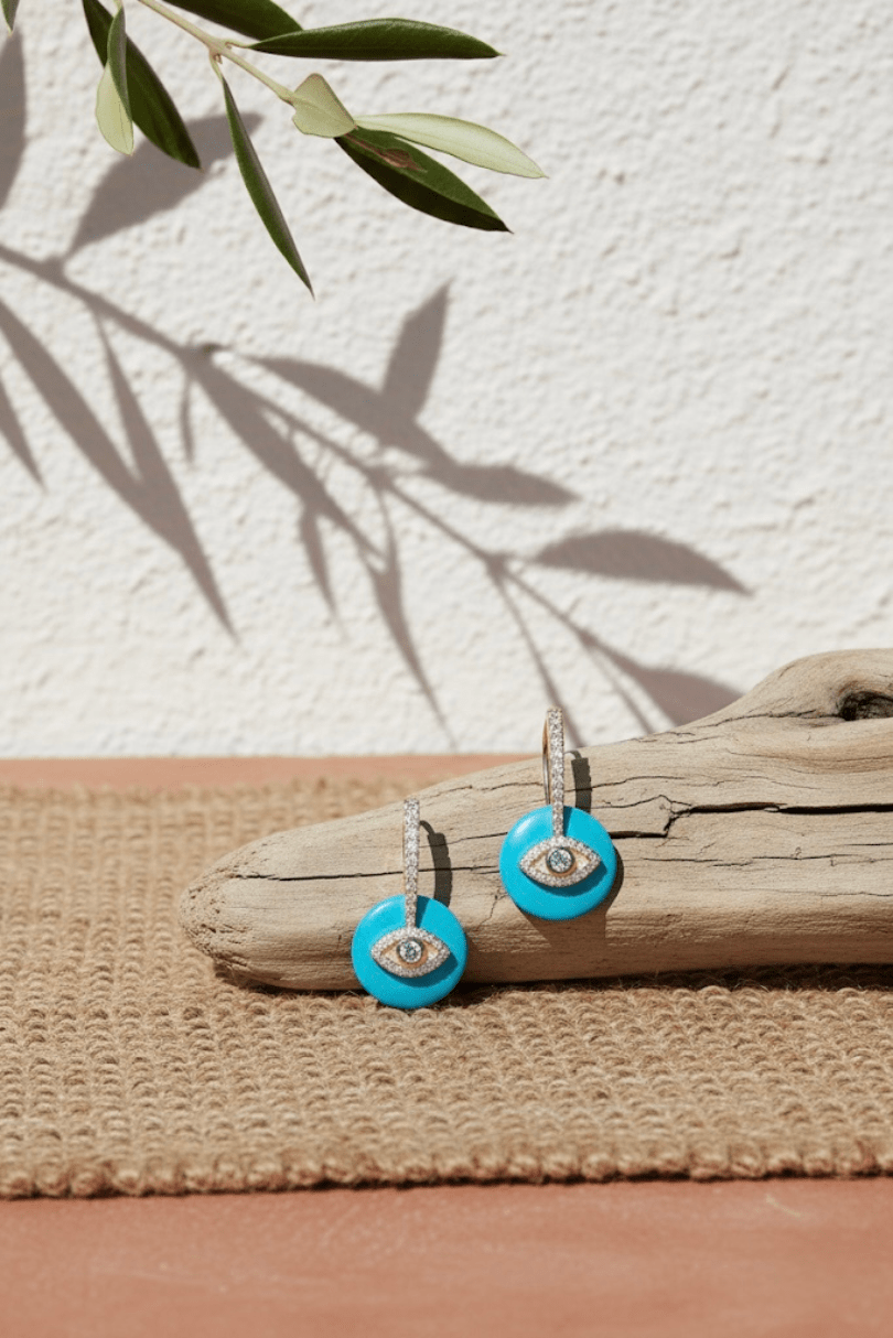 Unique and captivating, these one-of-a-kind Turquoise Evil Eye Earrings are handcrafted from solid sterling silver and adorned with beautiful turquoise stones. Accessorize with confidence and bring vibrant fashion to your look. Dare to make a statement!